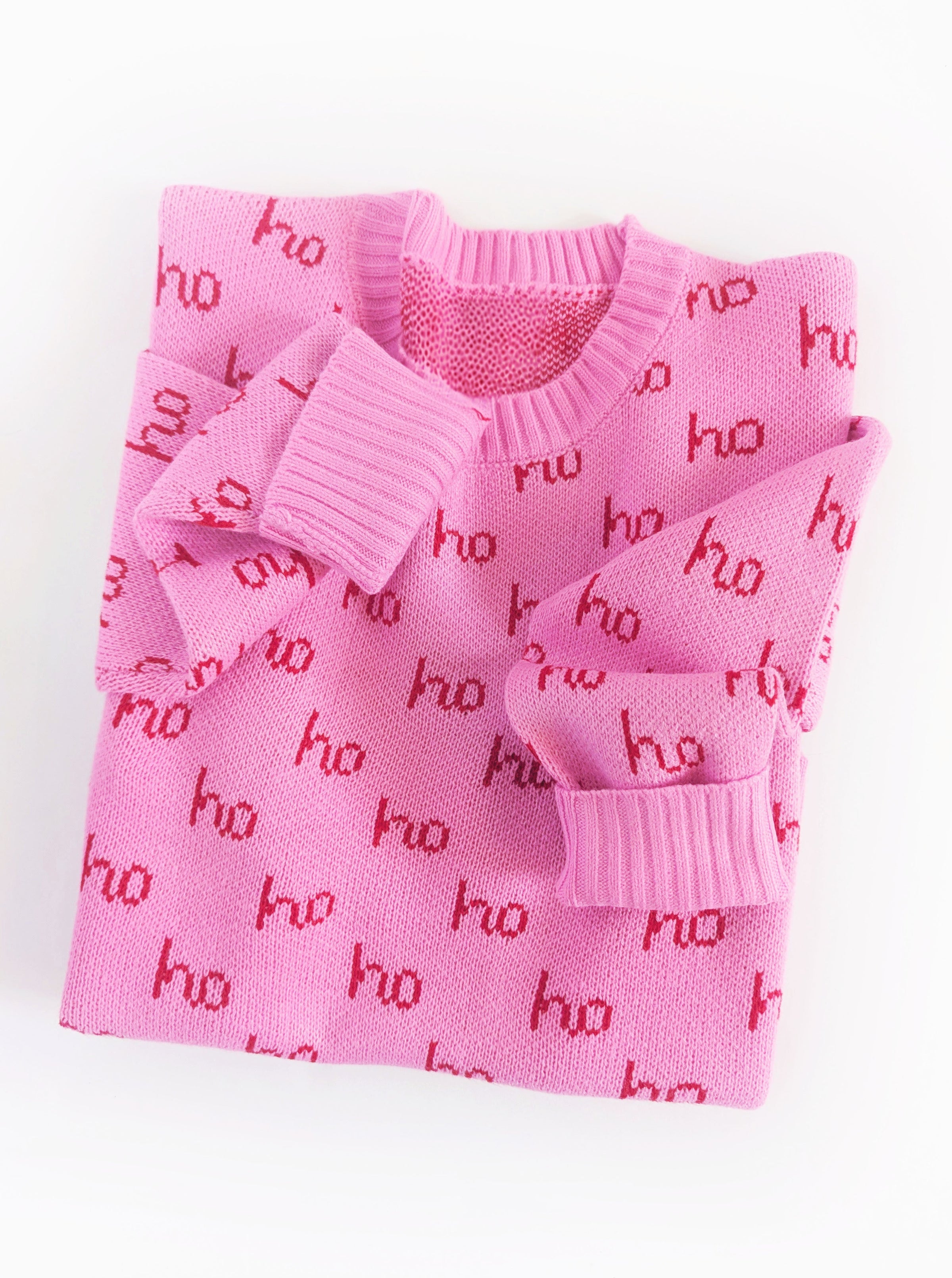 • Features: Make a merry statement in this fun pink knit sweater, with vibrant red "ho ho ho" lettering on both sides. Whether you're attending holiday parties or just spreading holiday cheer, this playful piece brings pure festive fun!