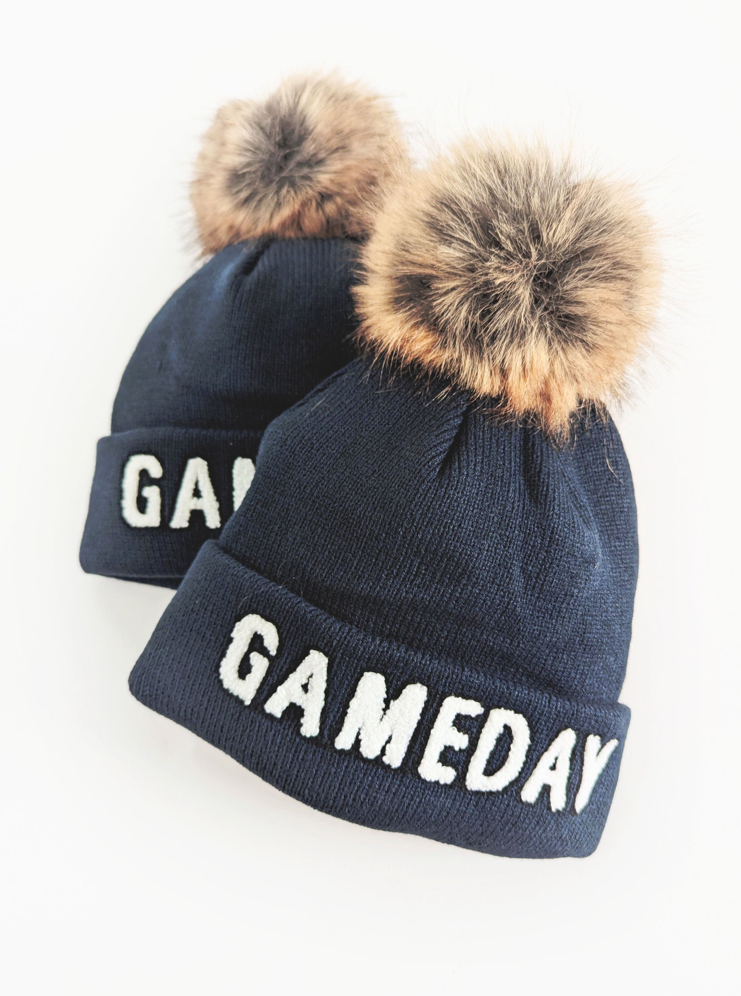 - Features: Stay cozy and cute with this Gameday beanie with textured "GAMEDAY" text on the cuff. The fluffy faux fur pom-pom on top adds a fun finishing touch, while the plush fleece lining keeps your head warm and comfortable all season long.