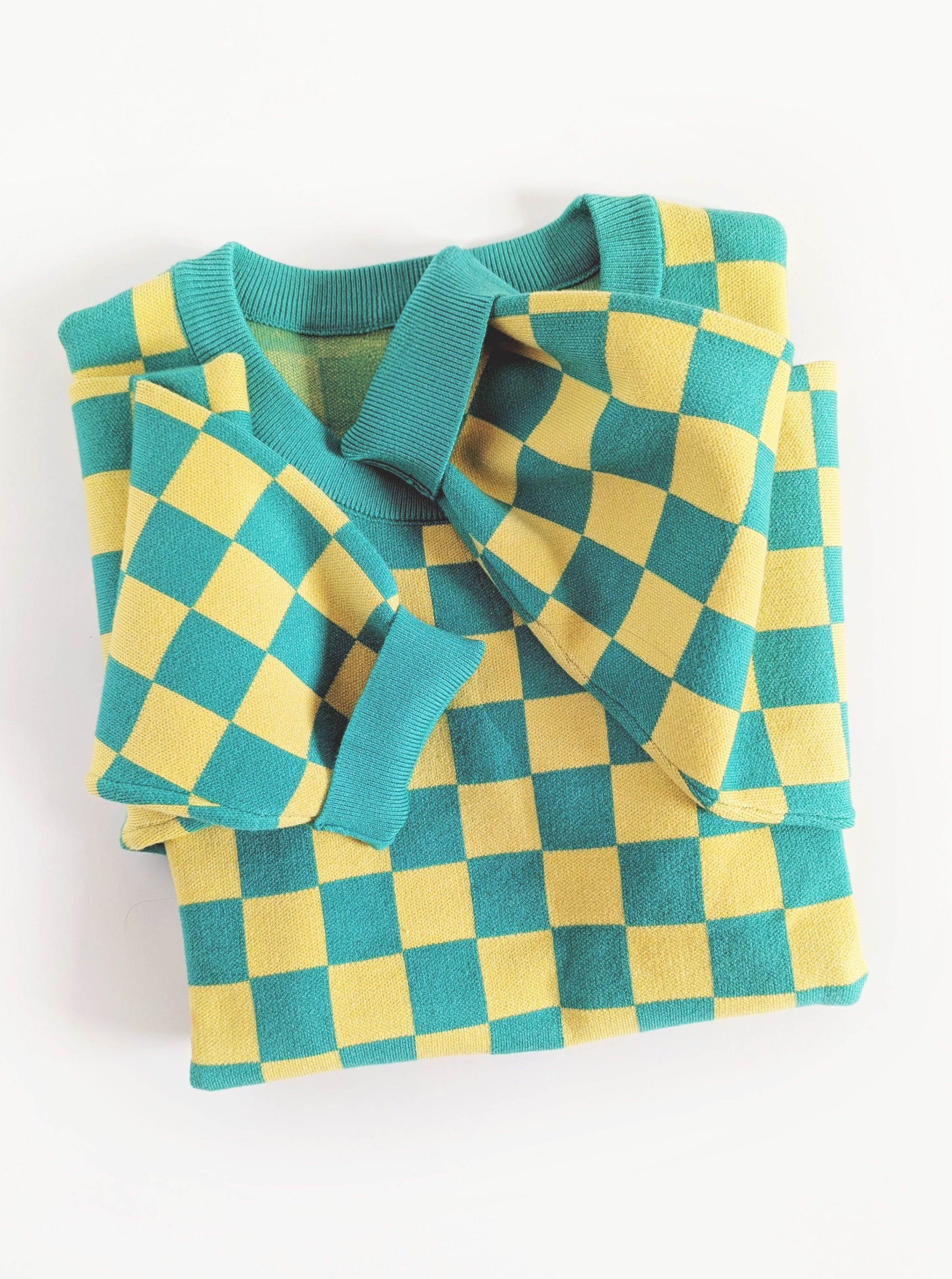 - Features: This checkered sweater with a playful green and yellow pattern that brings instant joy to your wardrobe. Lightweight knit keeps you comfortable all day, while ribbed cuffs and hem provide a polished finish. Perfect for layering or wearing solo—this vibrant piece is ready for fun!