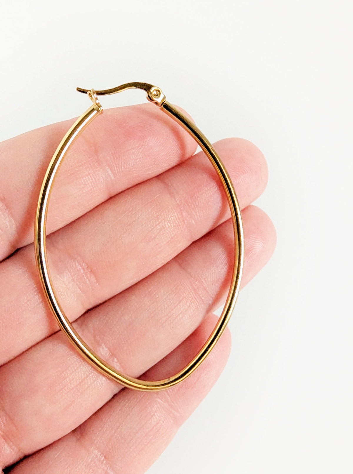 Tarnish Resistant Oval Hoop Earrings | Gold